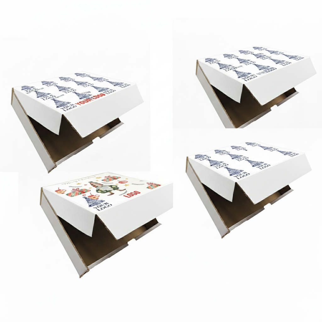 Le scatole per spedizioni a cofanetto sono protettive grazie agli spessori sovrapposti di cartone sui lati che proteggono i prodotti. Sono fabbricate in cartone a un'onda e sono facile da aprire grazie all'occhiello. Sono personalizzate con design natalizi già disponibile con l'aggiunta del Vostro logo oppure potete inviare un file per una personalizzazione su misura. Caratteristiche tecniche • posizione: sul coperchio e/o sulla patella di chiusura (vedi immagine) • area di stampa: larghezza max 28 cm, margine minimo dal bordo 15 mm • tipologia: stampa a colori senza fondi pieni (no stampa del bianco) • colore supporto: in caso di supporto avana sono indicati i colori scuri Per maggiori informazioni e per un’offerta fai click sul pulsante “ invia richiesta di preventivo “.