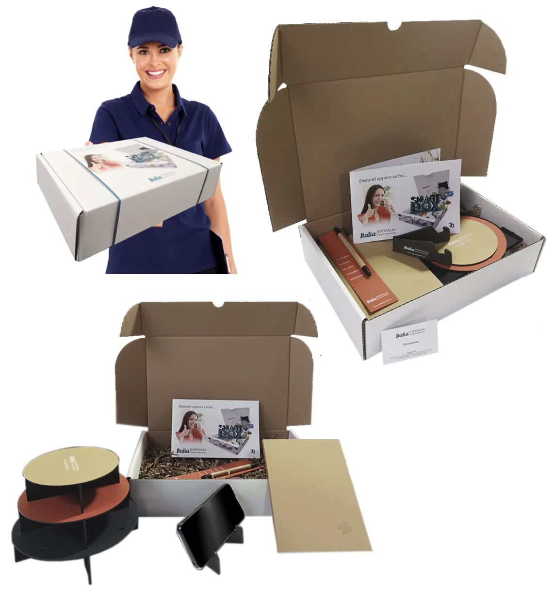 Gli Smart Box Tipitalia sono la perfetta coniugazione tra fisico e digitale e consentono di essere utilizzati ad integrazione di attività digitali come videoconferenza o webinar.